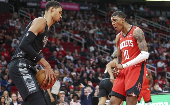 篮球直播吧12月12日讯 NBA常规赛,主场作战的休斯顿火箭以93-82击败圣安东尼奥马刺,火箭取得3连胜,马刺遭遇17连败。伊森18分14篮板1助攻,文班亚马15分18篮板3助攻。